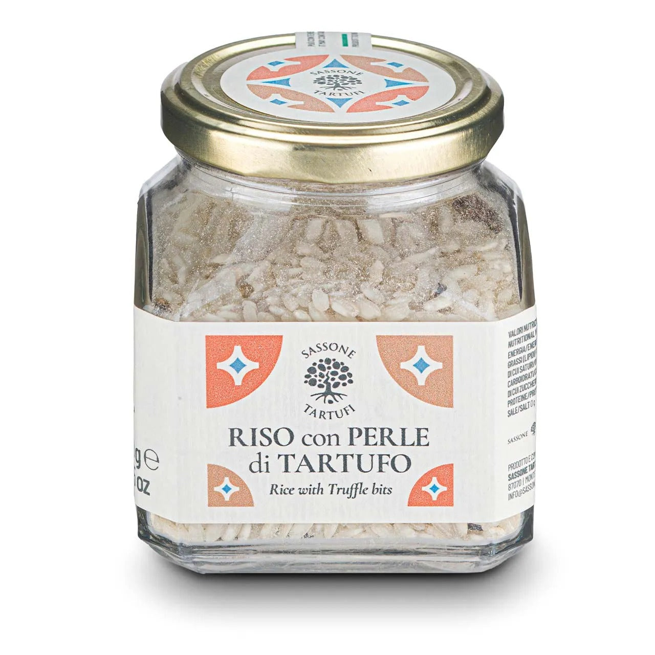Orez Carnaroli cu bucăți de trufă uscată pentru un risotto gata de gătit în câteva minute. În timpul gătitului, bucățile de trufă uscată recâștigă toată aroma și parfumul trufei proaspăt culese.