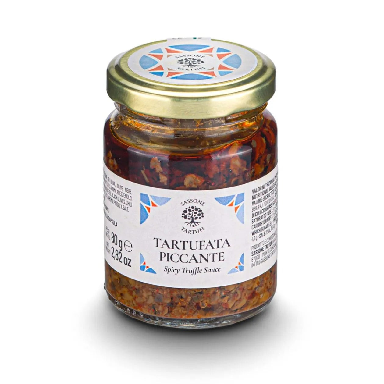 Ciuperci champignon 80%, ulei de măsline extravirgin, măsline negre, ardei iute, boia, trufă neagră de vară (Tuber aestivum Vitt.) 5%, arome, pătrunjel, sare.